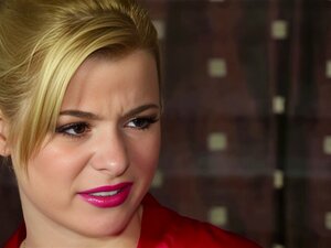 Geknebelte, gefesselte Blondine wird hart durchgenommen. Mädchen von nebenan Kate Kennedy erleidet brutale Aufhängungs-Bondage und Muschi-Finger-Fick dann fickt der Meister sie doggy und auf der Neigungsbank von Angesicht zu Angesicht im Kerker