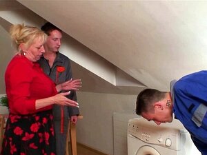 Zwei Handwerker ficken alte blonde Oma. Zwei Handwerker ficken alte blonde Oma
