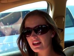 Schlampige Babe Jade Amber fickt ihre pfirsichige Muschi im LKW