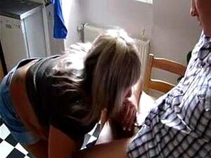 Blonde Stiefmami fickt einen jüngeren Hengst und bringt seiner Freundin bei, seinen Jock zu lutschen